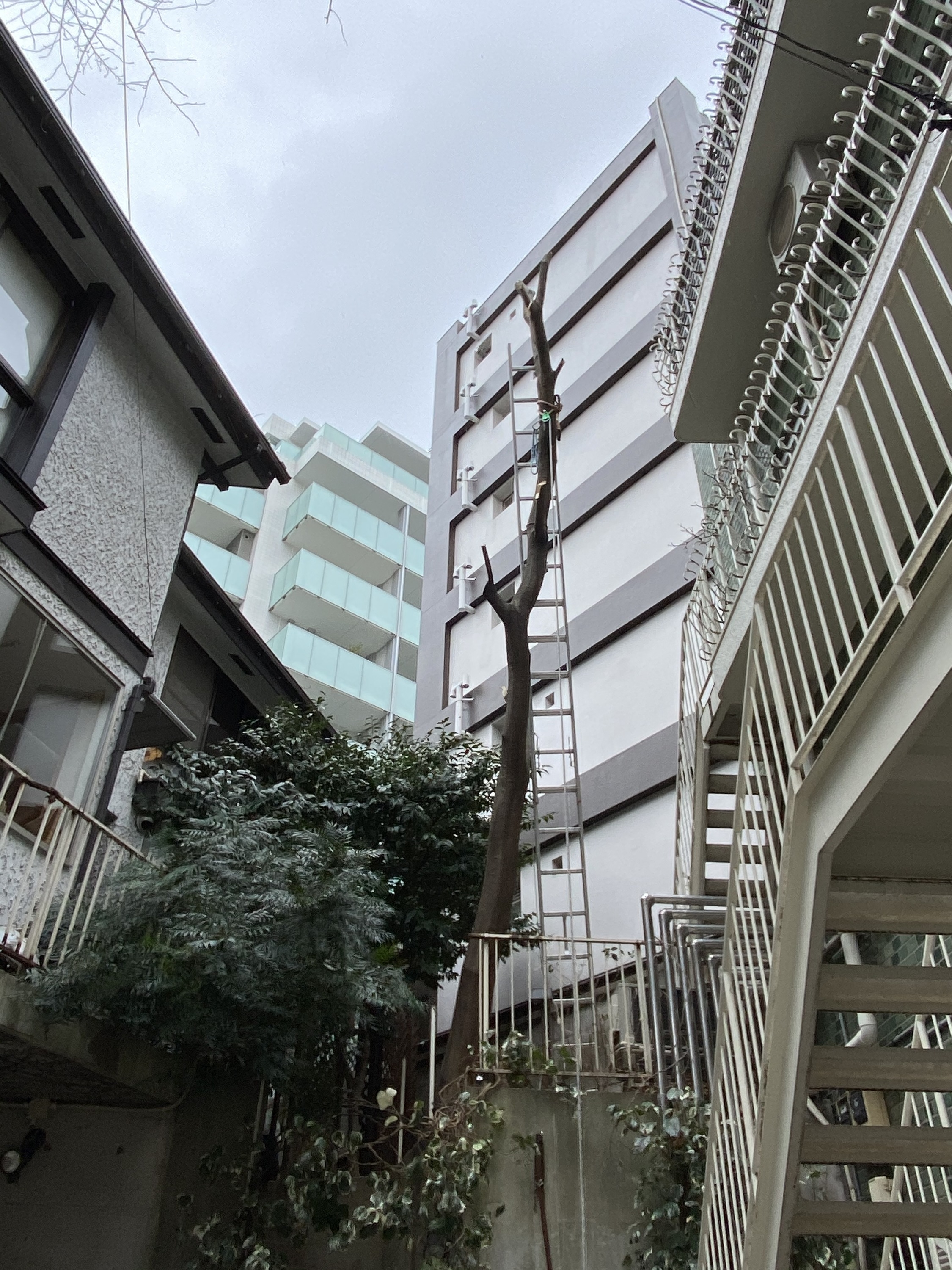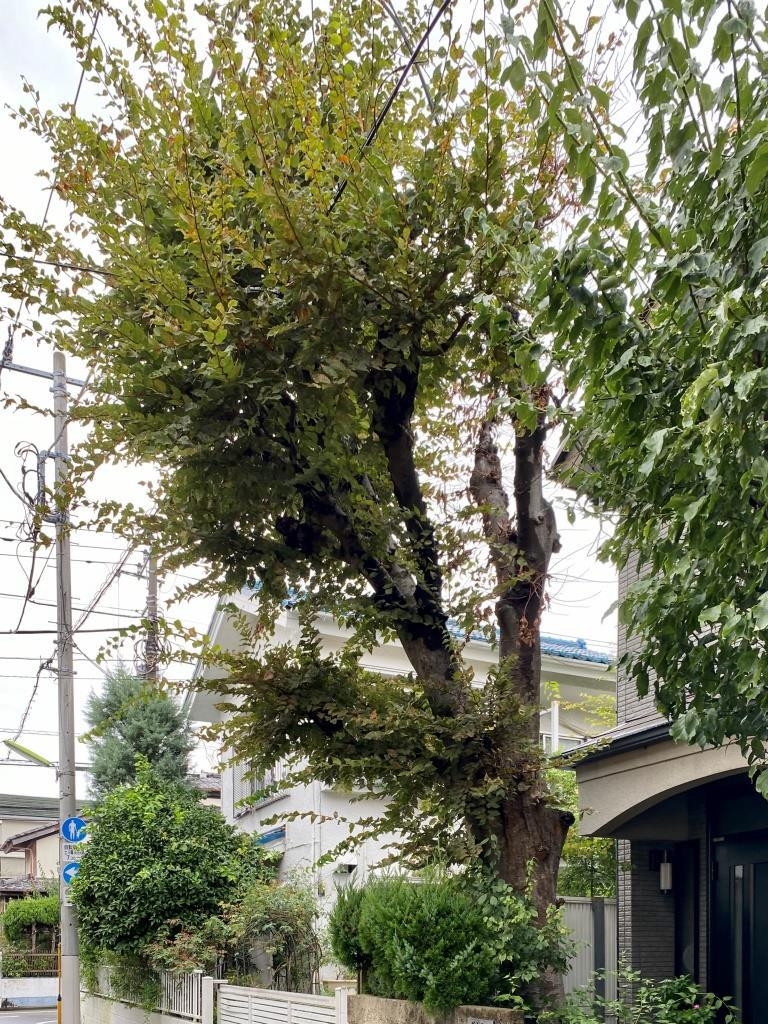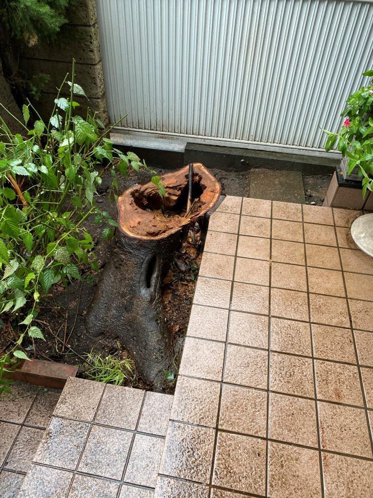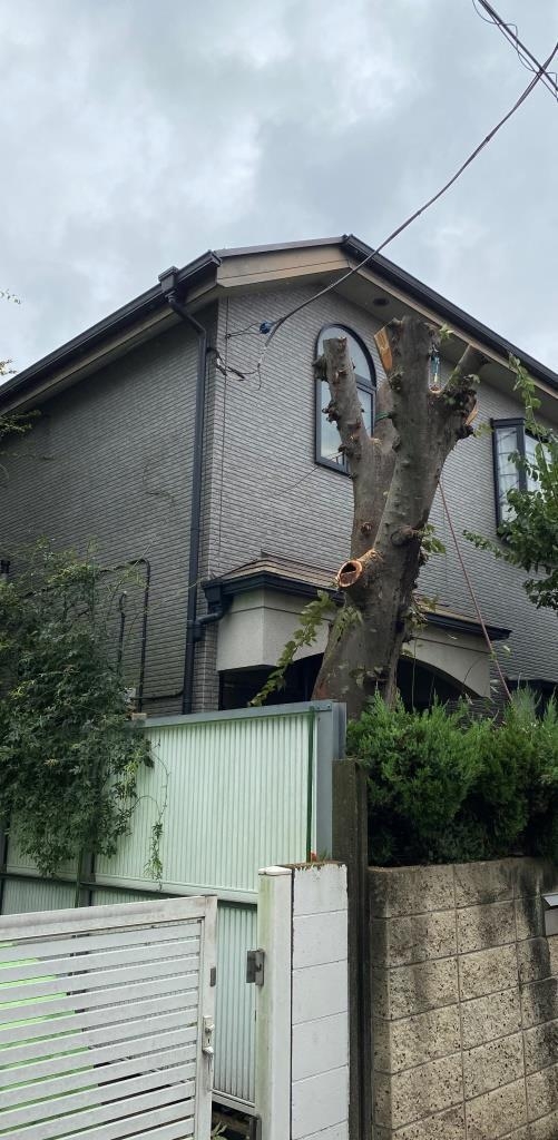 毎年剪定をしていたのですが、右半分が枯れてしまい台風がきたら危ないということで伐採にしました。