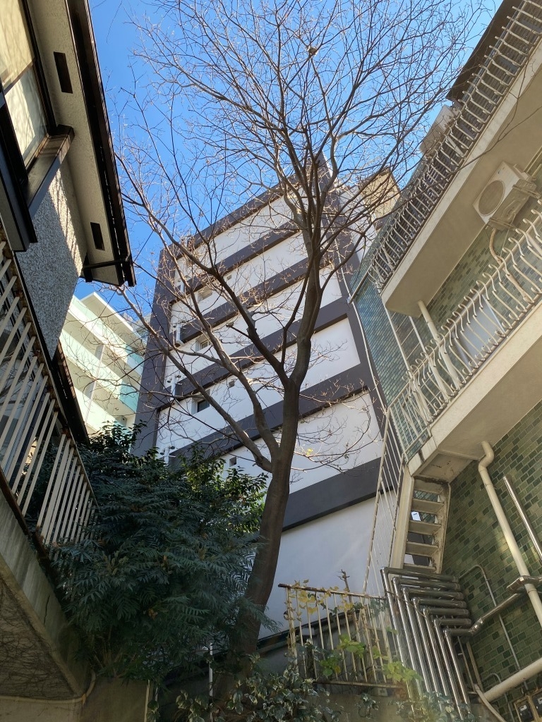 木が植えてある場所は、二階建ての家の一階の天井辺りの高さです。