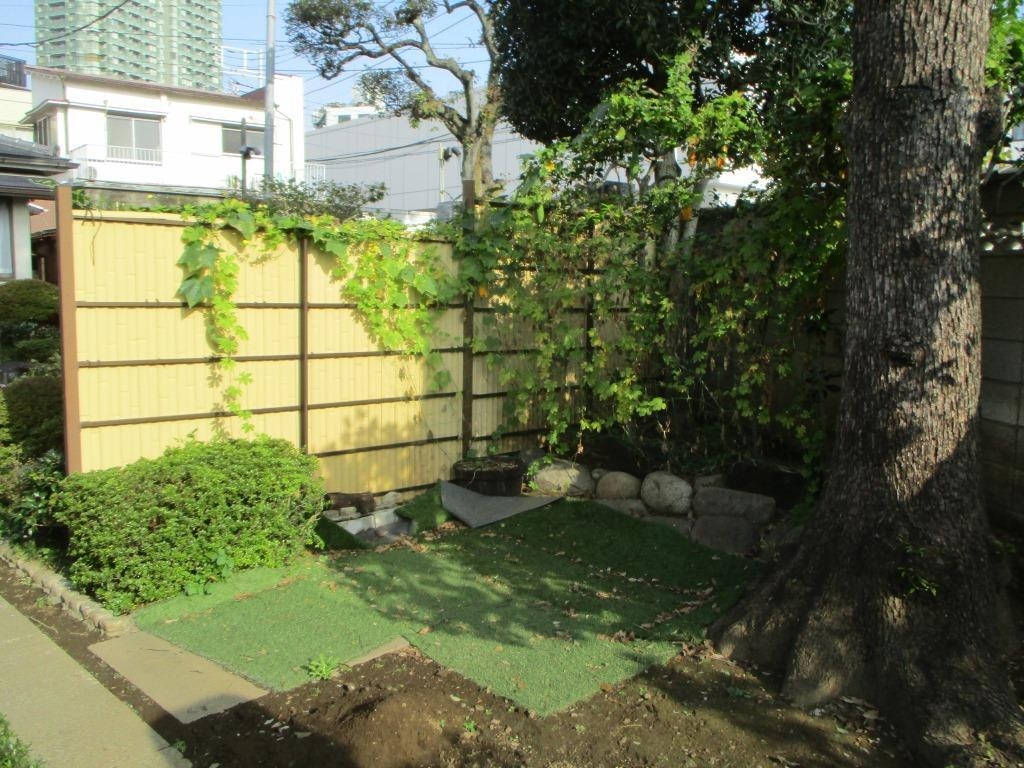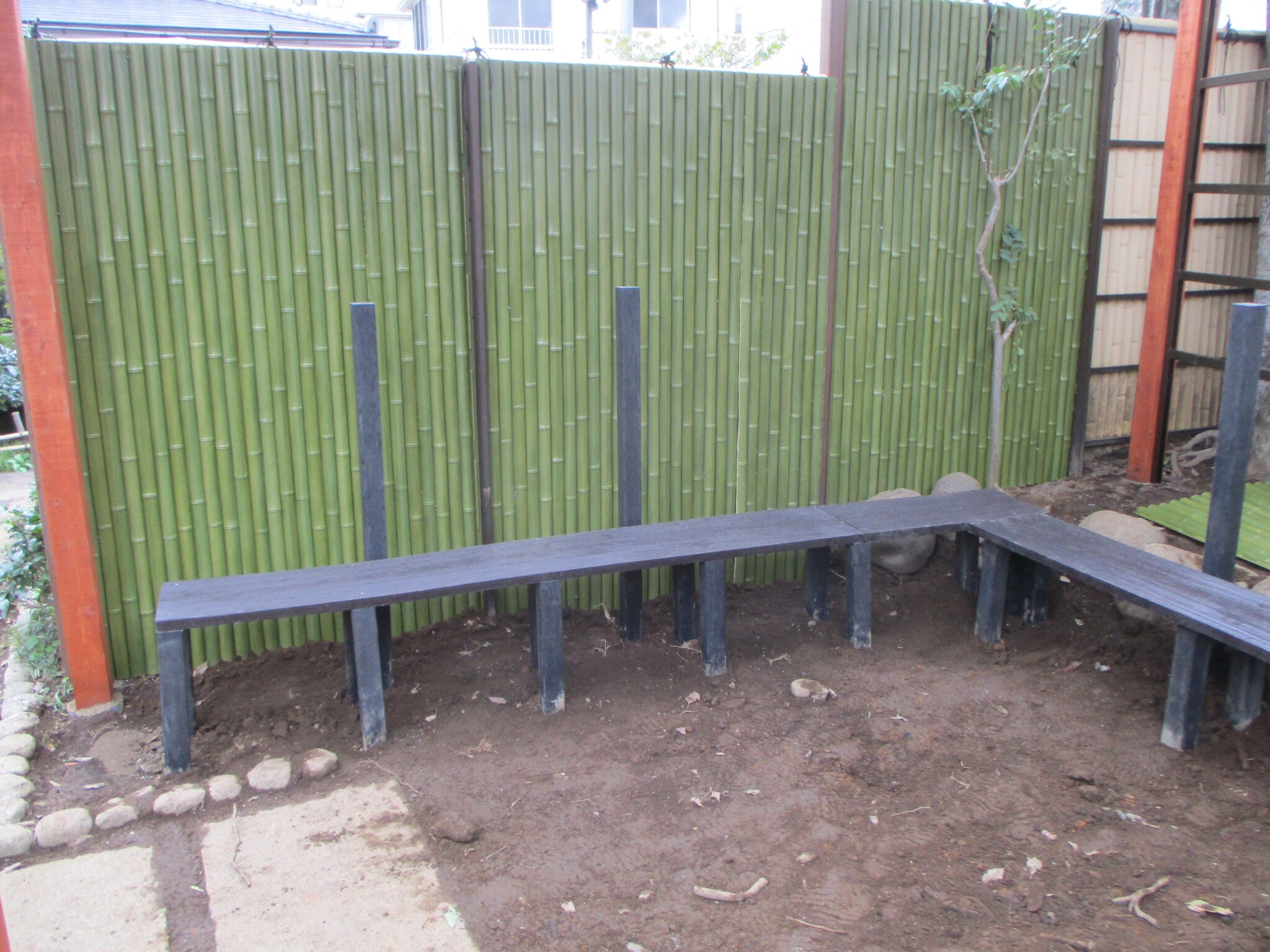 建仁寺垣のパネルを貼って見栄え良くして、マサド舗装して地面は歩きやすくしました。