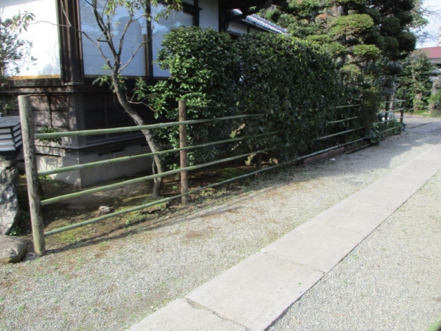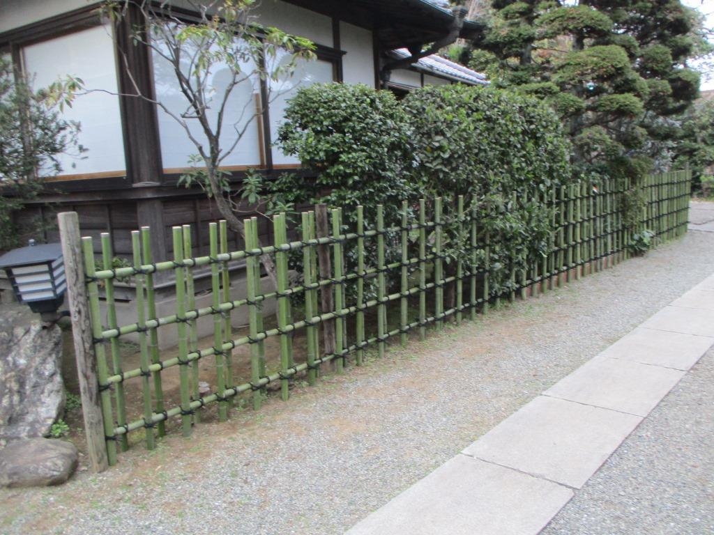 お寺さんで、四ツ目垣を約31間作りました。