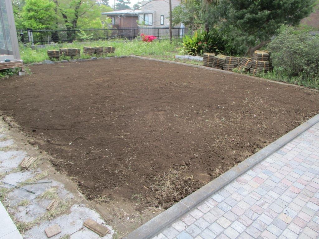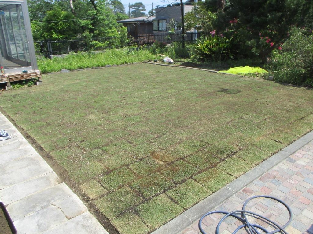 TM9という、あまり伸びない管理しやすい芝を使ってくださいという要望で芝張替えをしました。