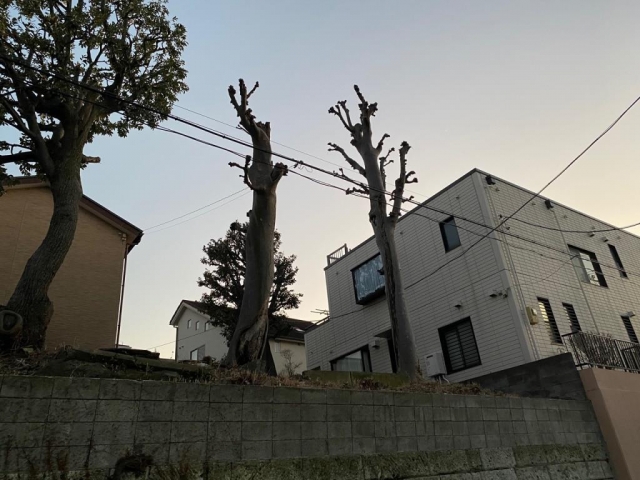 高台のケヤキの伐採です。