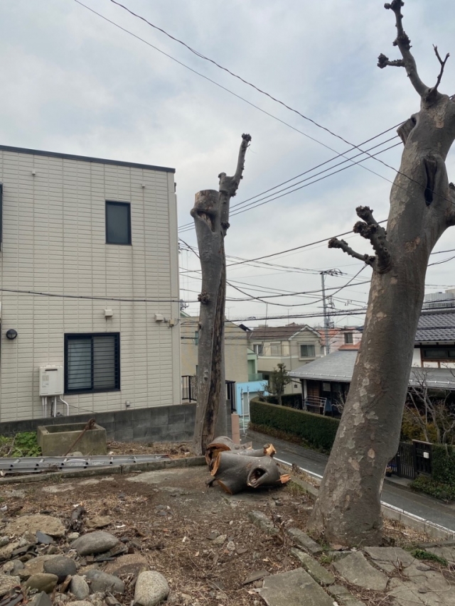 中が少し腐りでして、強風でかなり揺れて危ないというので残念ですが伐採しました。