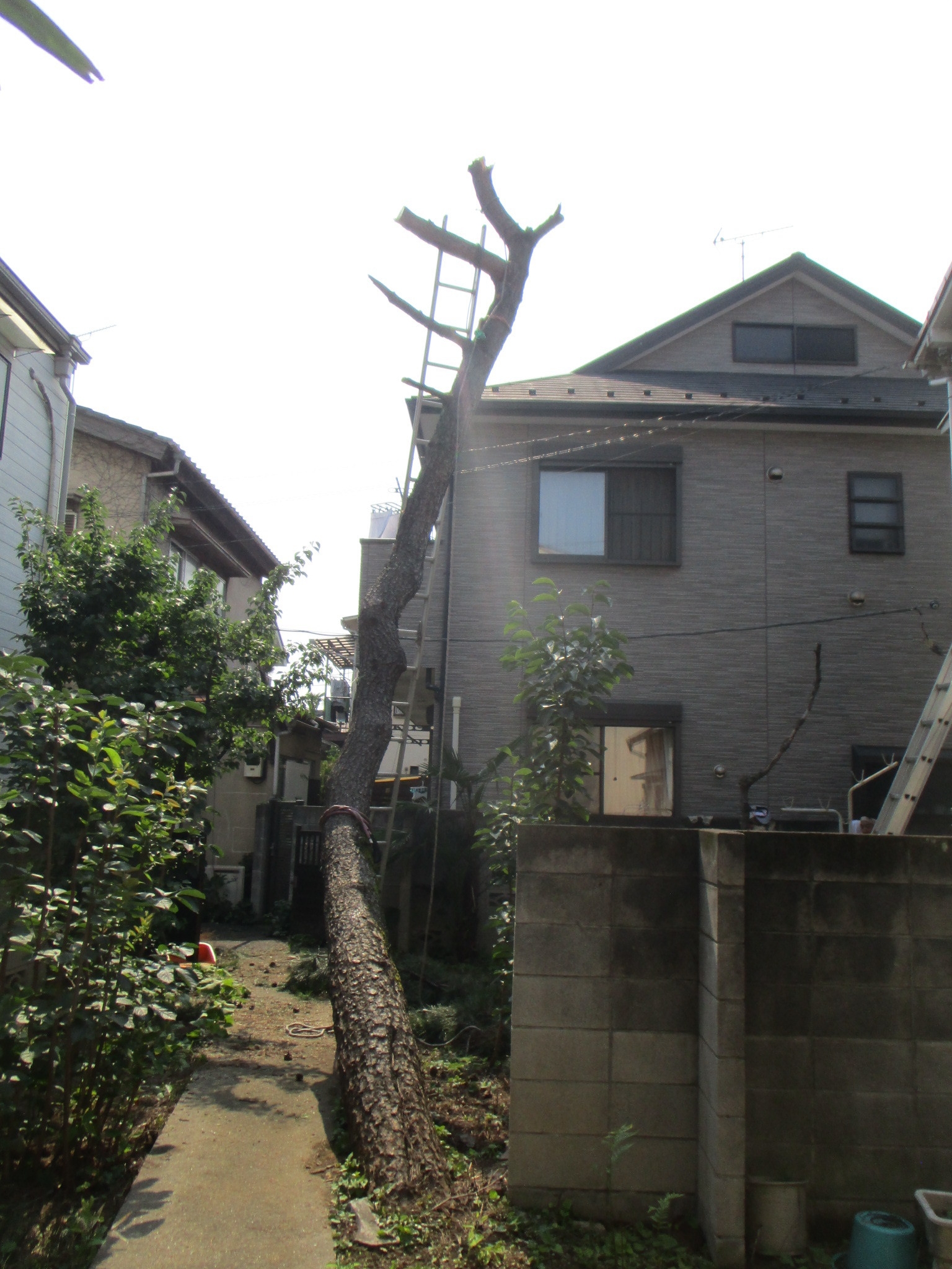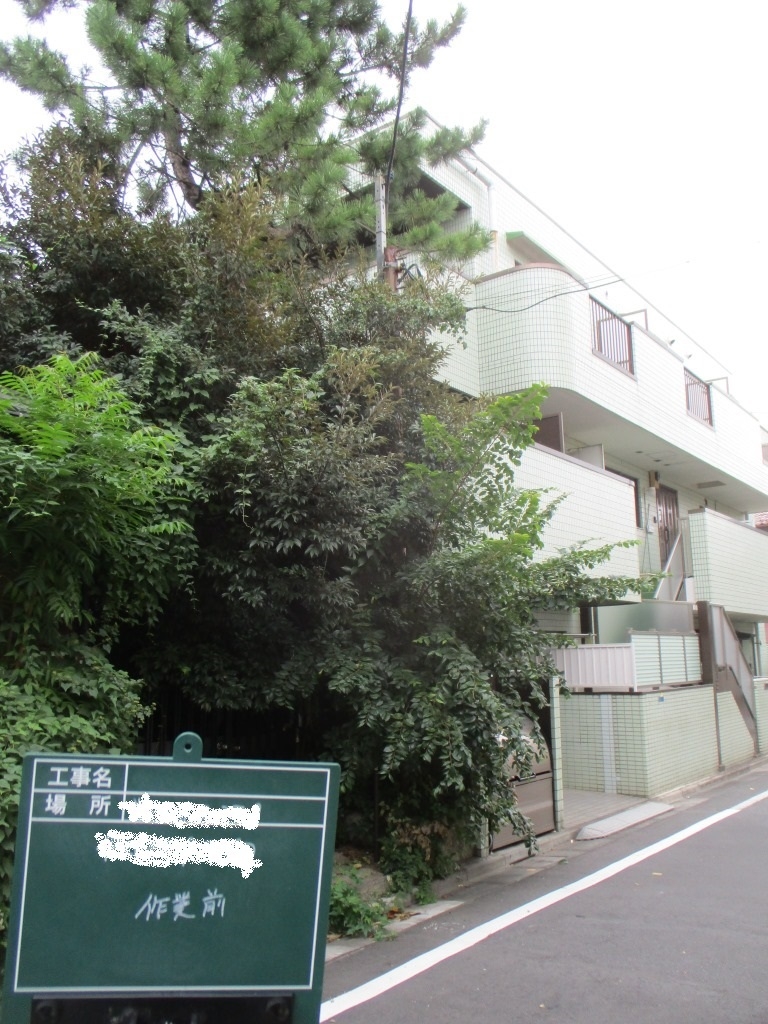 空き家で、木が伸びて道路まで飛び出して、隣りのマンションににも枝が伸び放題な現場でした。