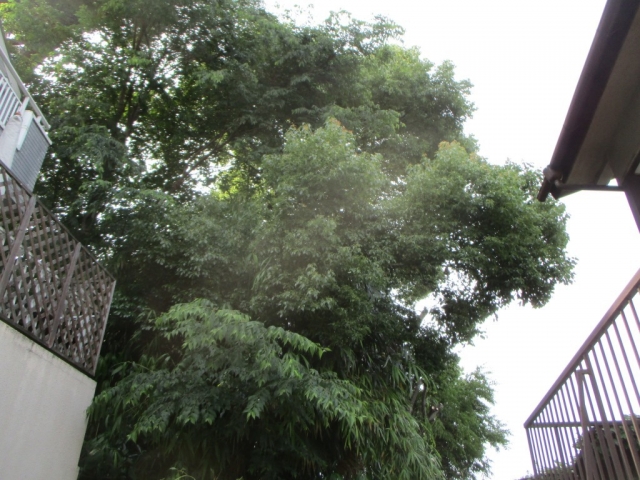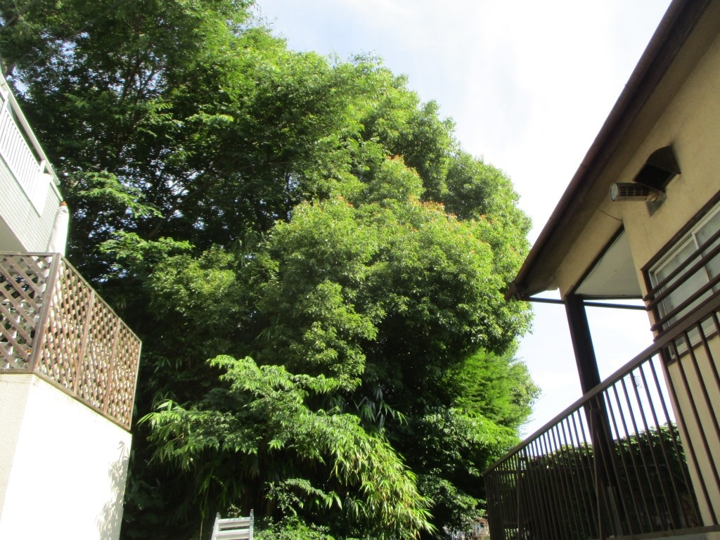 大きく張り出した枝が、隣の家の屋根まで伸びていました。