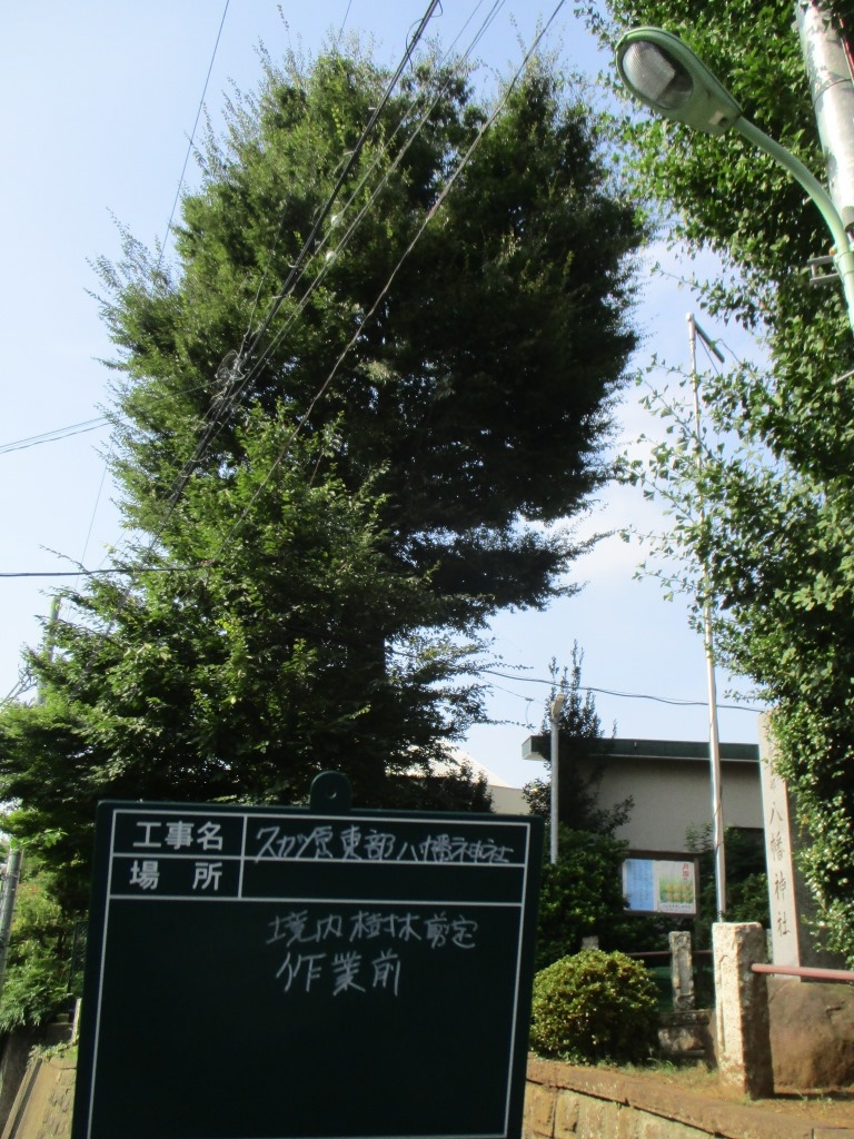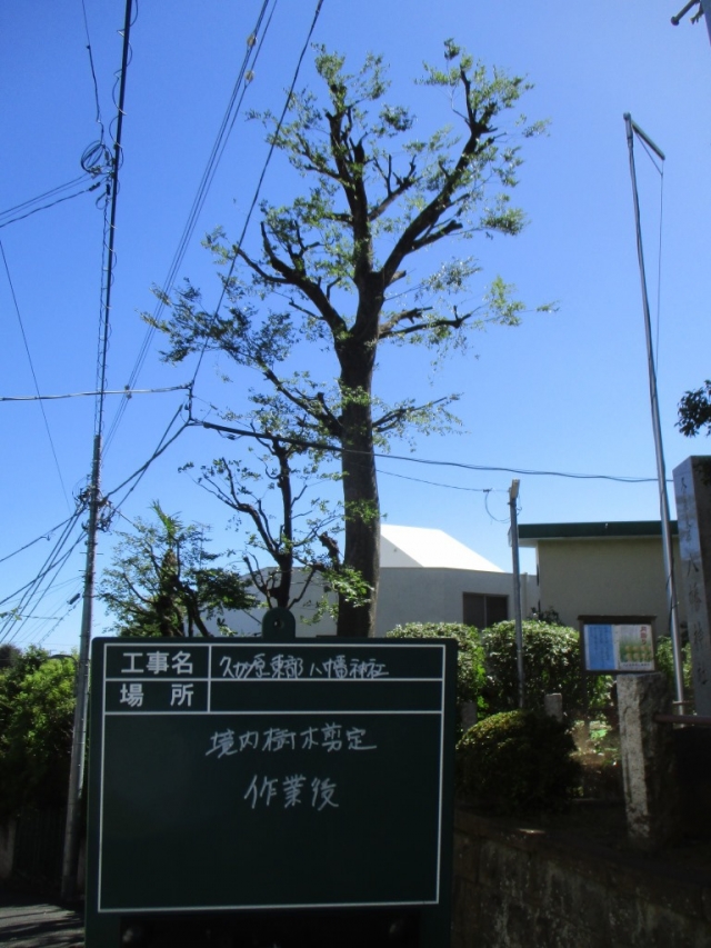 地元の久が原東部八幡神社のケヤキの剪定を行いました。