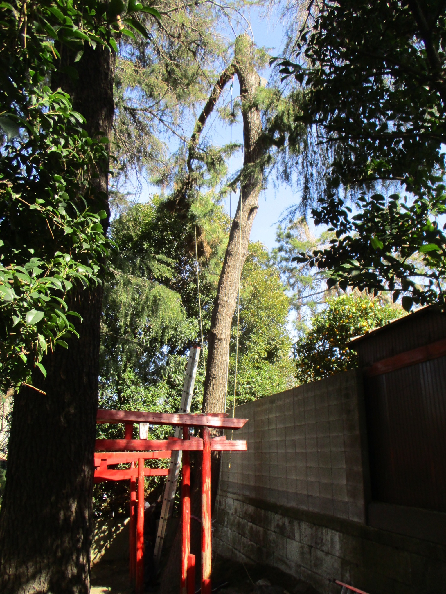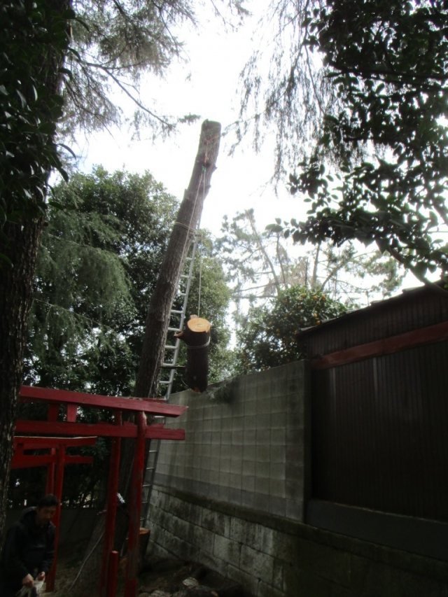 この場所は、枝を下す場所にブロック塀や鳥居などがあり、絶対に壊せません。