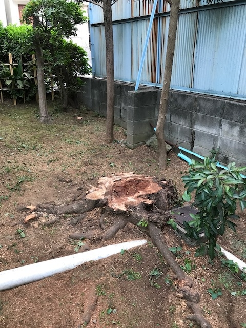 ところどころ枝に腐食が見られて、根元も少し腐食が見られるので残念ですが伐採しないと倒木の恐れがあるので切倒しました。